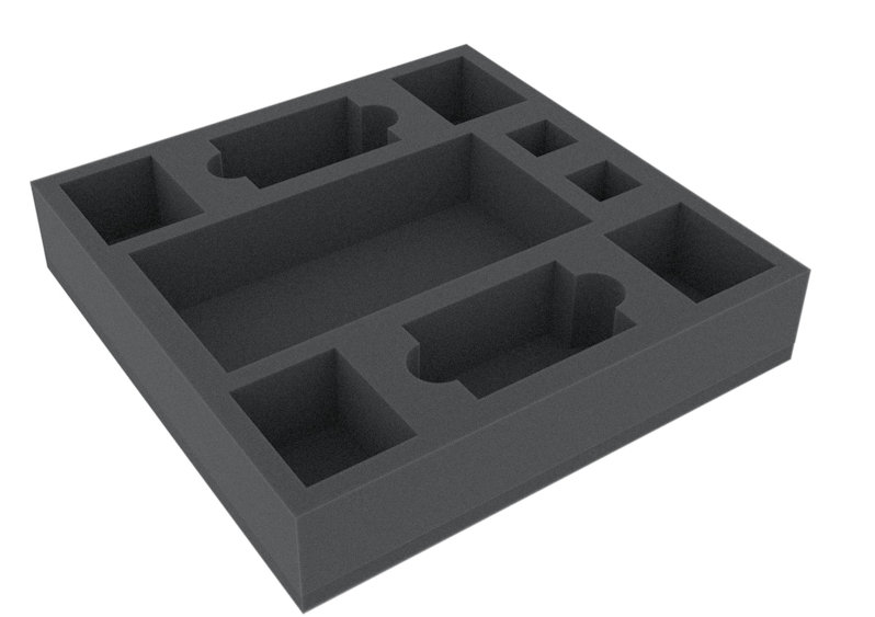 Foam tray dimensions: 247 mm x 247 mm x 50 mm and is custom made to suit the Mansions of Madness Beyond the Threshold board game box.