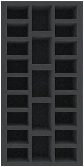 This foam tray suitable for retrofitting in many original board games boxes. The 23 different sized compartments are suitable for all conceivable game material. So miniatures, markers and dice can be kept in well.