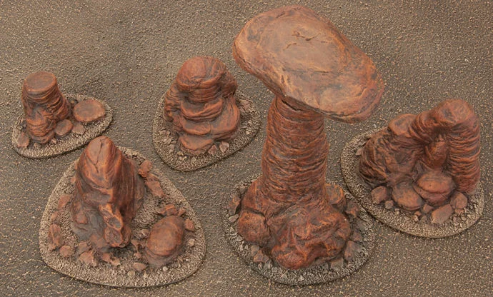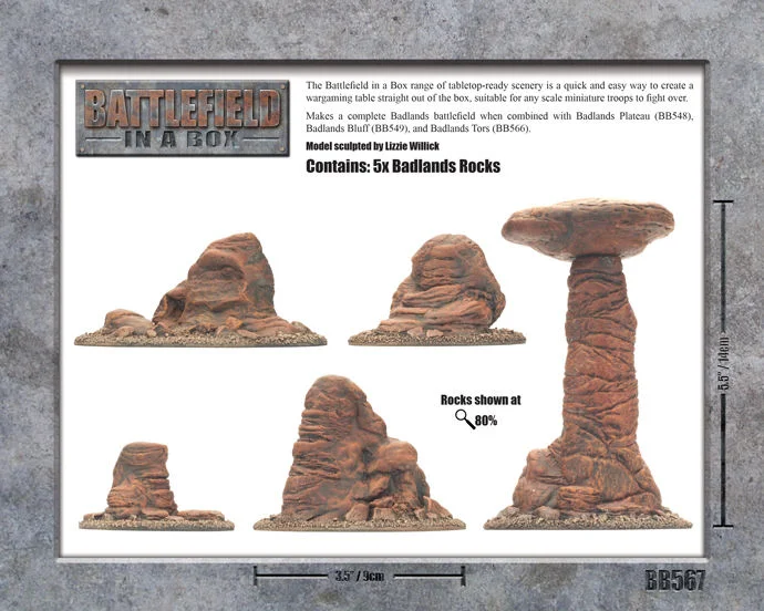 includes five pre-painted Badlands rocks.