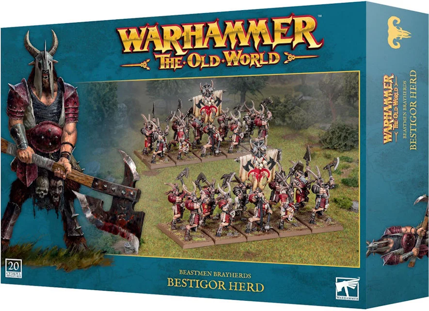This multipart plastic kit builds 20 Bestigors, elite melee infantry for your Beastmen Brayherds armies in games of Warhammer: The Old World. These savage warriors make ideal line breakers, able to hack their way through foes with their great weapons.