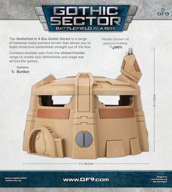 The Battlefield In A Box Gothic Sector is a range tabletop ready painted terrain that allows you to build immersive battlefields straight out of the box. Combine multiple sets from the United Frontier range to create epic battlefields and wage war across the galaxy. Contains: 1x Bunker