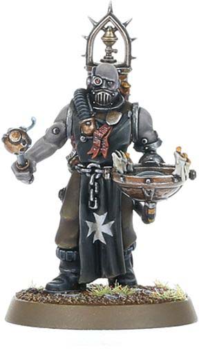 Beväpnad med en plasma pistol och en artificer crozius marscherar han rakt in i striden, särskilt dödlig mot fiendens psykers. Vid hans sida följer Cenobyte Servitors, bärande heliga reliker som driver hans stridsbröder till ännu större dåd i Kejsarens namn.