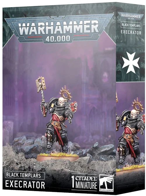 Execrators are the living embodiments of the oaths of their battle-brothers – ferocious warrior priests who lead the Black Templars in lethal rampages. They teach that war is the most worthy chapel for warriors, every bludgeoning blow of their crozius arcanum punctuated with zealous insults and roared sermons.
