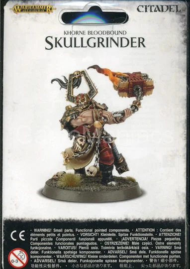 This multi-part plastic kit gives you everything needed to build one brutally murderous Skullgrinder, replete with his heavy brazen anvil. A single-pose miniature with an ornate Khorne helm, blacksmith’s cloth and belt-attached hammer, he’s absolutely covered in Khornate symbols and imagery. Nine components in total, includes one Citadel 40mm Round base.