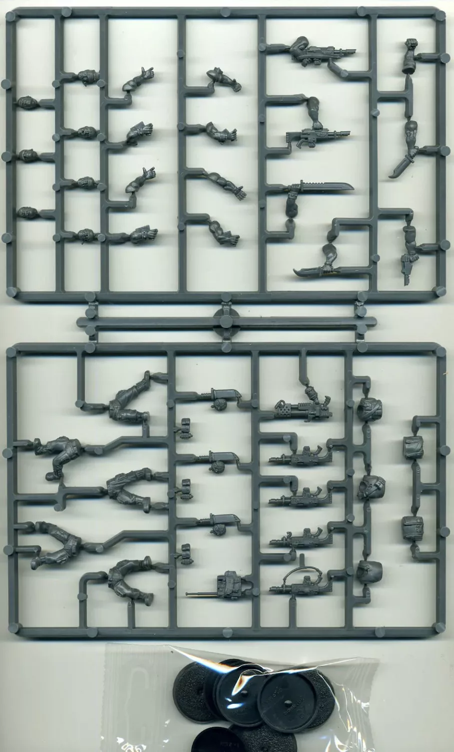 This box set contains 10 multi-part plastic Catachan Jungle Troops, and includes: five leg variants, five variant bodies, seven head variants, 10 lasguns, two laspistols, two flamers, two Vox-casters, and a selection of bladed weapons. Also included are a host of additional components allowing you to assemble a Sergeant and personalise your squad. Models supplied with 25mm round bases.