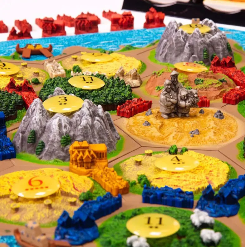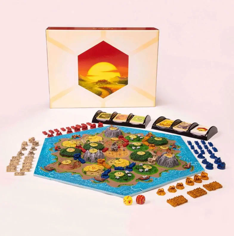 Hand-painted 3D tiles are based off of tiles originally hand-sculpted by Klaus Teuber.