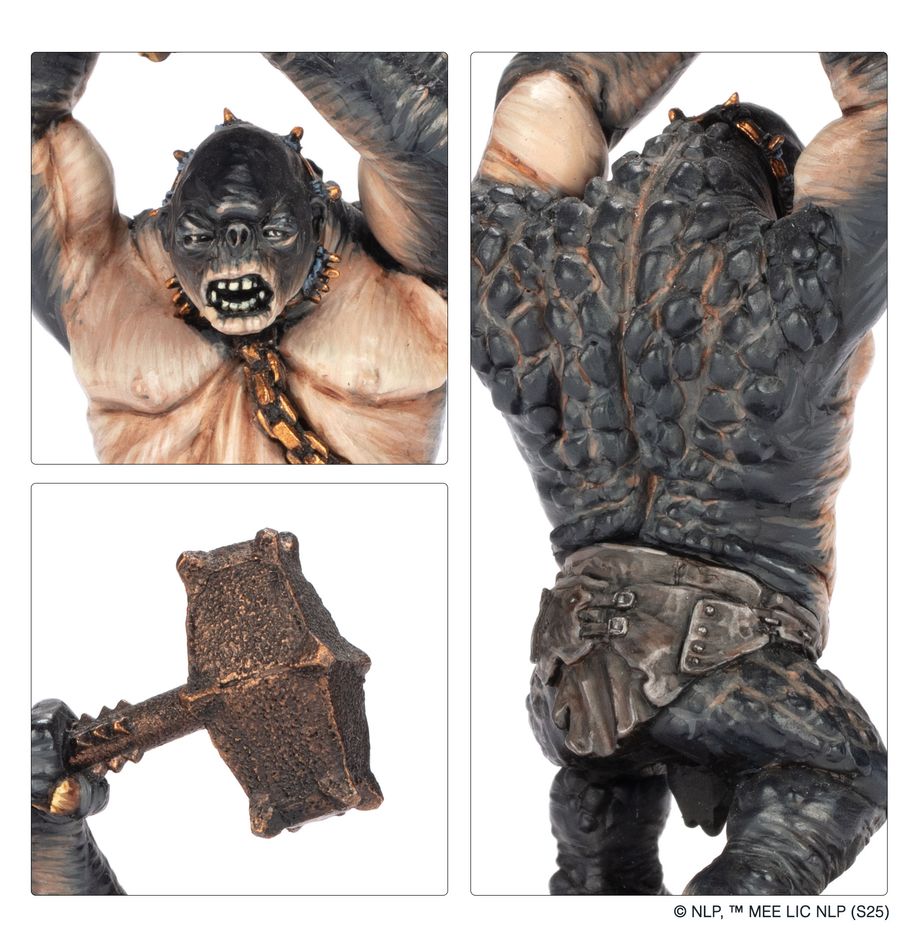 Cave Trolls can be found within many of the caverns and tunnels of the Misty Mountains – lumbering and loathsome creatures that seek the darkness. These great beasts often fight alongside Moria Goblins, their great strength the ideal complement to the teeming Goblin hordes, smashing aside any foes, their thick leathery hides protecting them from incoming blows. This multipart metal kit builds a single towering Cave Troll, the ideal support for your Depths of Moria army. Exceptionally tough, and capable of taking on almost any enemy while the rest of your army surges forward. This one is armed with a Troll chain and a huge club to take advantage of its beastly strength. This kit contains six metal components and 1x Citadel 50mm Round Base. This miniature is supplied unpainted and requires assembly