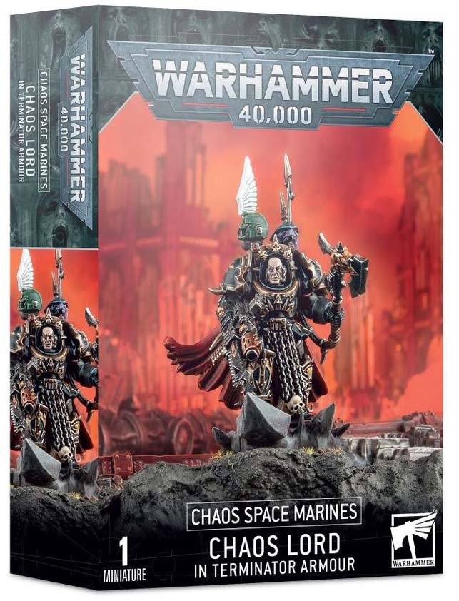 Chaos Space Marines Chaos Lord in Terminator Armour är en tungt bepansrad ledare i Warhammer 40,000 som leder anfallet från frontlinjen.
