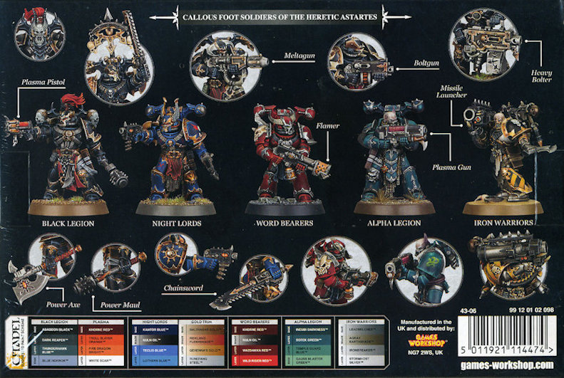 Inte ens Space Marines går säkra för Chaos lockelser. Oavsett om de härstammar från det ursprungliga upproret av Horus eller om de byt sida nyligen så kombinerar dessa mäktiga krigare sina genmanipulerade egenskaper med mörk magi vilket ihop med åratal av träning gör dem till hänsynslösa krigsmaskiner.