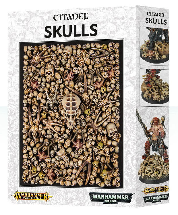 This is a box of 340 (yes, three hundred and forty!) plastic skulls, designed for the hobbyist to decorate scenery, bases and models as they see fit. There are even 20 extra jawbones!