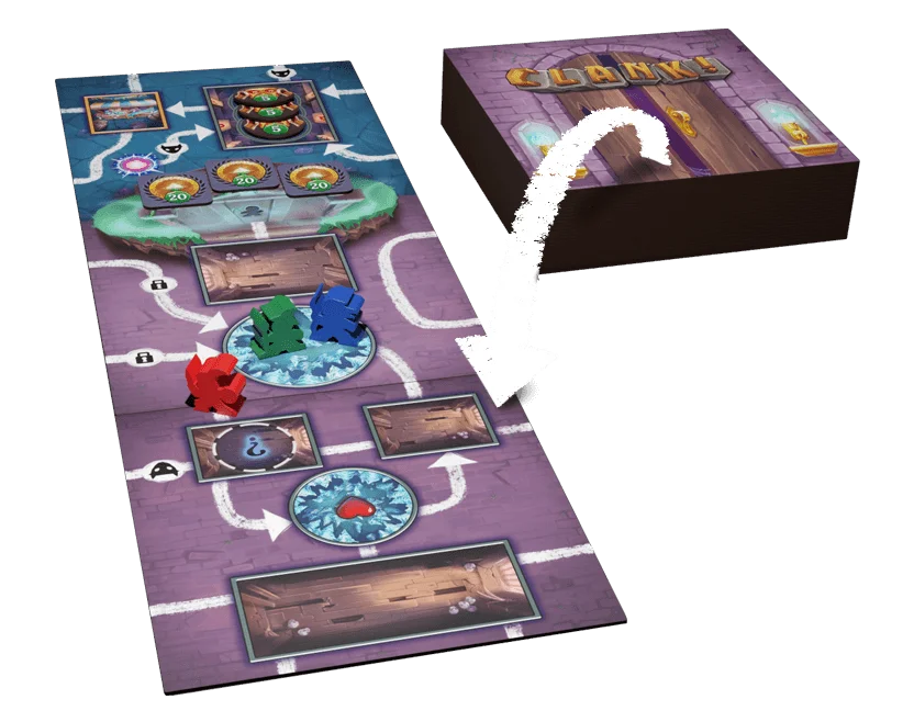 Each trip into the catacombs is unique, as you lay tiles to create the dungeon. You can play using only the all-new Dungeon Deck, or include cards from previous CLANK! expansions.