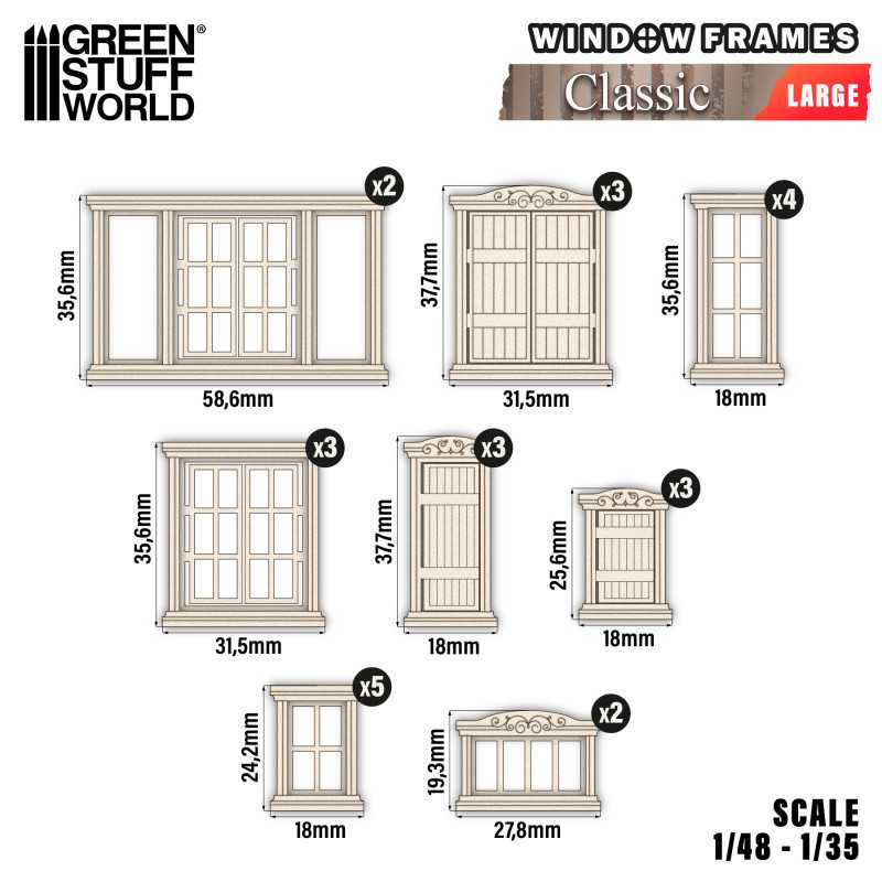 Enhance the finish using them with our miniature stained glass collection, available exclusively at Green Stuff World, for a stunning and realistic touch to your creations. We recommend using PVA glue or cyanoacrylate glue for assembly and model paints for painting, as these frames are delivered unpainted.