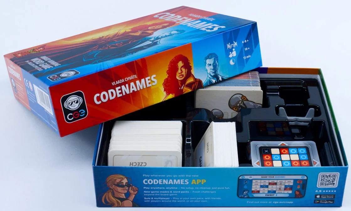 In Codenames, two rival spymasters know the secret identities of 25 agents. Their teammates, however, only know these agents by their codenames — single, seemingly random words like “chocolate,” “sunflower,” or even “carrot.” (Yes, there's an agent out there codenamed ""carrot."") The goal is simple: each spymaster wants their team to identify all of their agents first, without accidentally revealing the assassin.