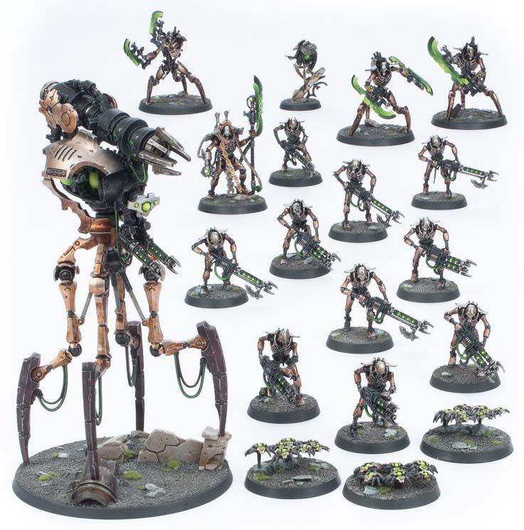 Necrons vaknar ur sin uråldriga dvala för att återta galaxen. Under ledning av obevekliga härskare marscherar deras legioner fram i perfekt formation, där varje enhet är byggd för att uthärda, reparera och fortsätta striden tills fienden är utplånad.