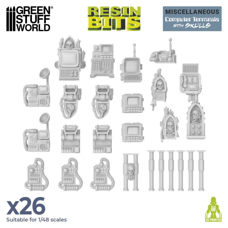 The resin bits of computer terminals with skulls are versatile and adapt to different environments within the miniatures world. This combination of gothic and technological elements are perfect for cyberpunk themes, post-apocalyptic scenarios, and dark fantasy.