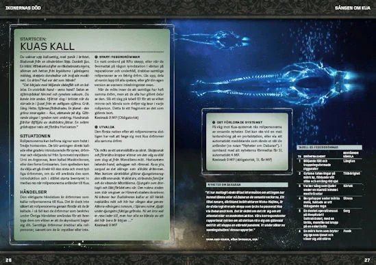 - Sången om Kua: Det första scenariot börjar med drömmar som för rollpersonerna tillbaka till Kua