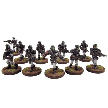 Taken from the citizens of a thousand worlds, trained to follow orders without question and kill without thought, Corporation Marines are equipped with the latest tactical laser weaponry and wearing resilient battlefield armour, these perfectly drilled soldiers are the reason why world after world keep falling under Corporation control. Number of Miniatures: 20 Product Type: Plastic Resin Miniatures Unit Type: Infantry This Set Includes: 20 x Corporation Marines 3 Varieties of Special Weapons Commander options including energy fist and pistol. Round Plastic Bases Mantic Points Models supplied unassembled and unpainted