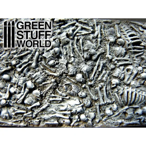 Quality resin plates with high level of details. You can divide them into smaller pieces to decorate your bases or leave them as a whole to cover bigger surfaces. Give your scenery an esoteric touch with these original skeleton plates! Each set includes 2 plates in size 70x140mm with which you can practically decorate 1 whole army.