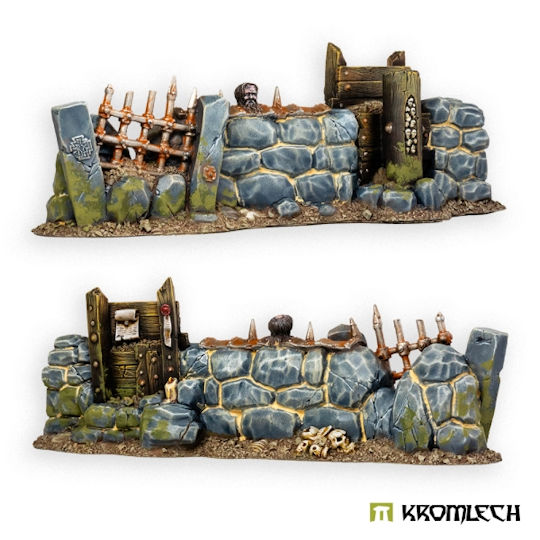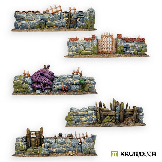 Raised out of heavy stones, reinforced with wooden planks and iron grates, those fences are not only useful to keep the stock from escaping - they can be easily transfered into barricades against any outside threat. This set contains five high quality resin sections of Stone Fence. Designed to fit 28mm heroic scale wargames.