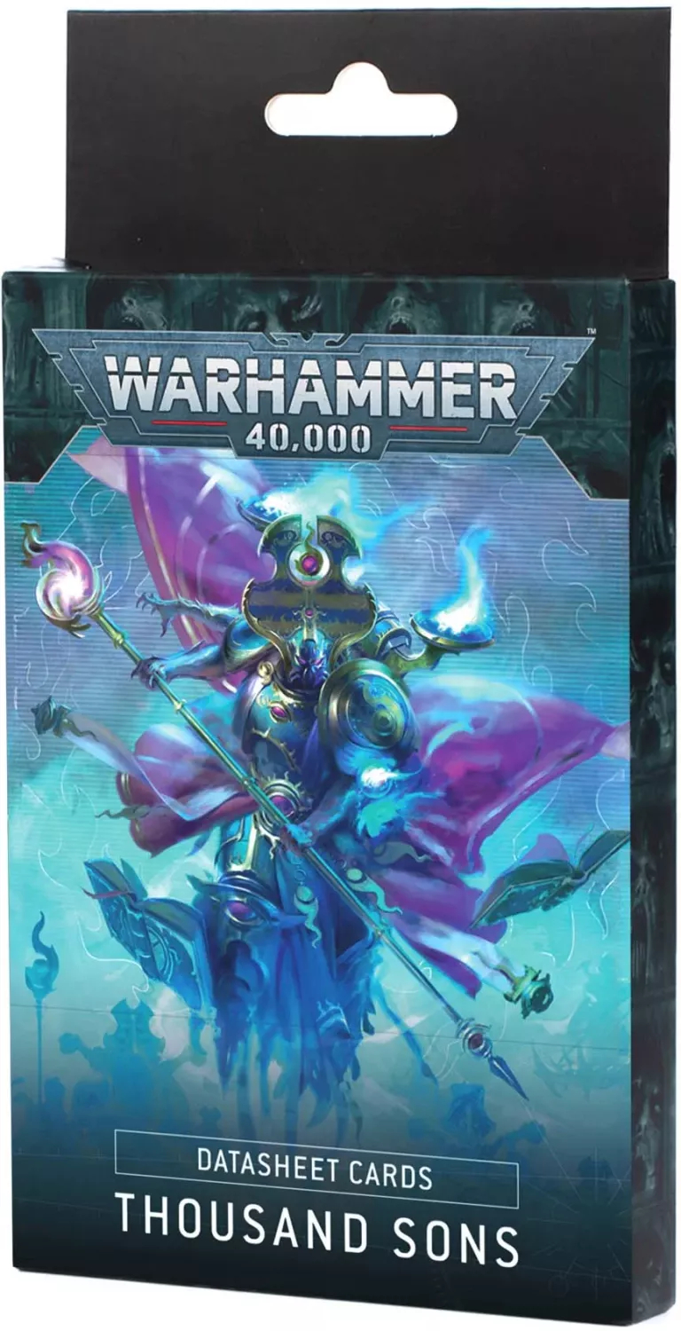 This set of 39 cards will help you keep track of your Thousand Sons units in games of Warhammer 40,000. There are individual datasheet cards for every unit – detailing their profiles, wargear, options, and special abilities. They're an ideal way to easily check key information in the heat of battle. You'll also find a reference card for the Thousand Sons army rule and special datasheet cards for use in Combat Patrol games.