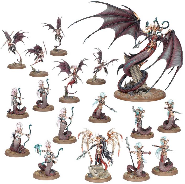 Daughters of Khaine Battleforce – Morathi-Khaine leder en brutal styrka med Scáthborn och flygande krigare.