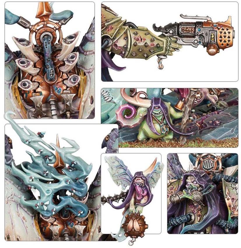 Denna massiva Daemon Primarch är täckt av groteska detaljer – från ruttnande ventiler och surrande flugor till slingrande, halvorganiska slangar – vilket gör honom till ett imponerande centerpiece i varje Death Guard-samling.