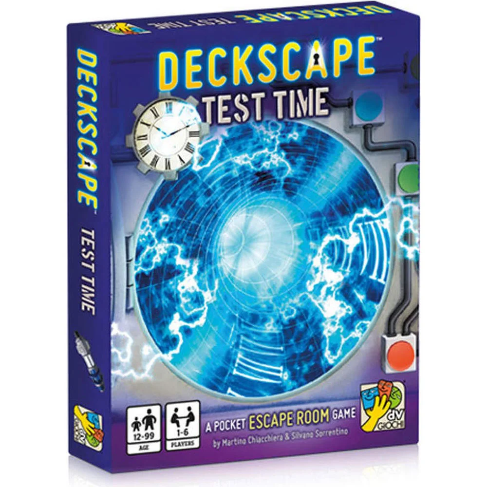 Deckscape: Test Time is the first title in a series of cooperative games inspired by real escape rooms in which a group of people are "trapped" inside a room full of puzzles and odd items. The goal of the game is to solve puzzles, understand the plot of the story, and make intelligent use of the items provided in order to exit from the room as quickly as possible.