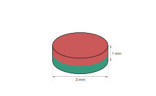Disc Magnet diameter 3 mm, höjd 1 mm (20st) Nickelpläterad 210g styrka