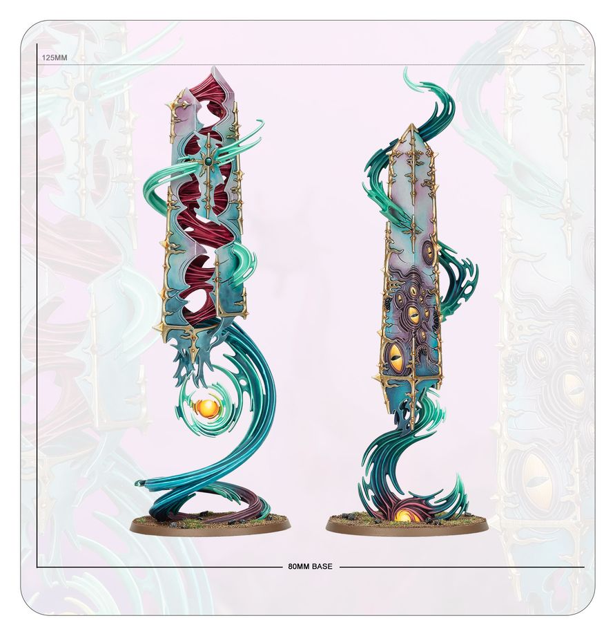 This multipart plastic kit builds a pair of Argent Shards, faction terrain for your Disciples of Tzeentch armies in games of Warhammer Age of Sigmar. These columns of sorcerous energy empower nearby forces, giving you a vital edge to help enact your nefarious plans.
