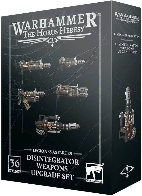 This plastic kit can be used to upgrade Legionaries from the MKII, MKIII, or MKVI Tactical Squad sets into Veterans armed with powerful disintegrator weapons. The kit includes 20 disintegrator rifles, along with closer-ranged blasters, devastating heavy disintegrators, flexible combi-weapons, and pistols. Also included are battery packs to complete the look.