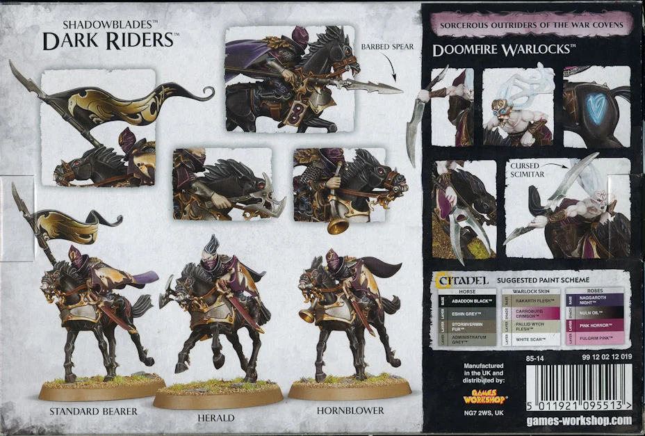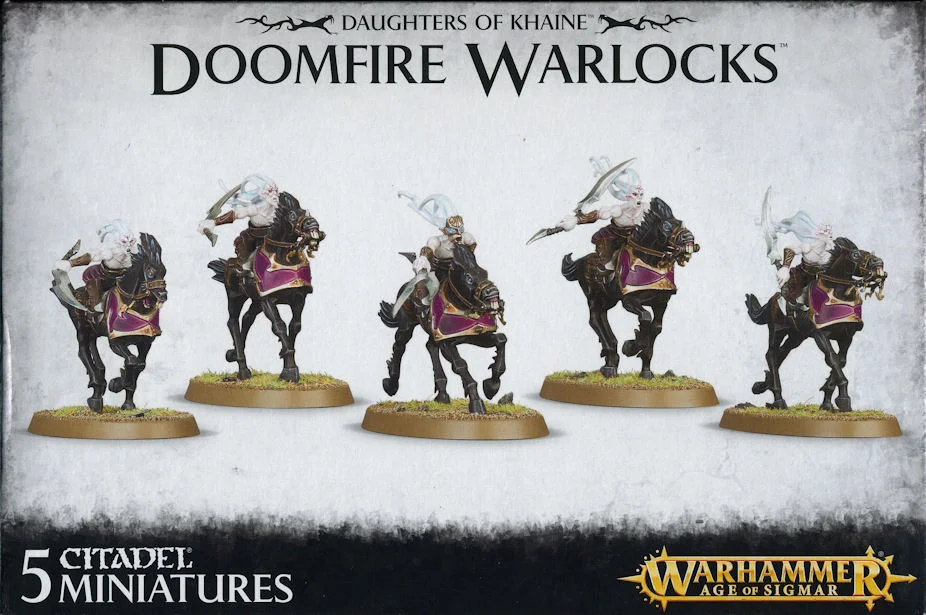 The Doomfire Warlocks come as 98 components, and are supplied with 5 60mm Oval bases. The kit can optionally be used to assemble 5 Dark Riders.