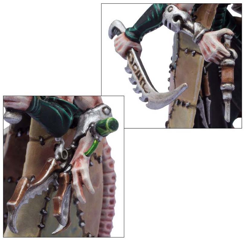 På slagfältet rör sig en Haemonculus med kuslig elegans, uppburen av sin groteskt förlängda ryggrad. Med kirurgisk precision delar han ut långsamma och plågsamma dödar, samtidigt som hans närvaro förstärker och förändrar de allierade omkring honom.