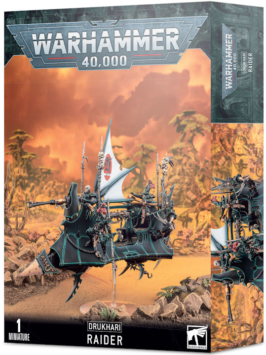 This box set contains one multi-part plastic Raider. This 103-piece set includes two weapon options - a dark lance and disintegrator cannon. Model supplied with a large flying base.