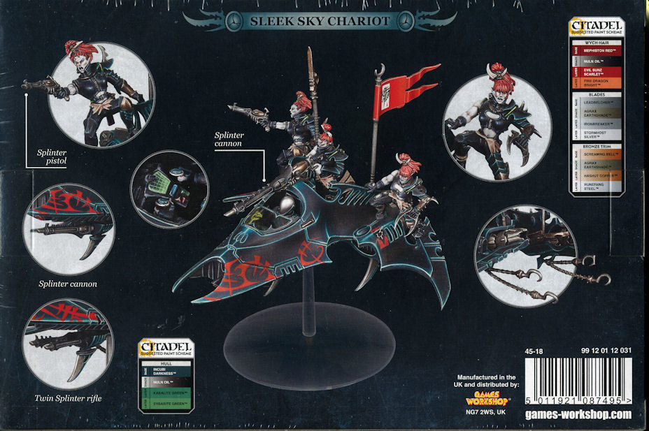 Dark Eldar litar på överraskningsmomentet och rå hastighet, vilket gör det naturligt att deras flygfarkoster alla är snabba och lättmanövrerade. Den mest smidiga av Commorite's transportfordon är Venom, en pilsnabb hovrare som kan föra en hel kader av krigare i strid och slår som en förgiftad pil mot fiendens hjärta. Om bara en enda Venom kommer igenom fiendens försvarslinjer, är det tillräckligt för att sprida förödelse då den använder alla sina vapen för en mer än vanligt ödeläggande täckande eldgivning under tiden dess dödliga last rusar till verket. Det är för detta ändamål som den används flitigt av Archons, Succubi och deras respektive livvakter. Förpackningen innehåller en Dark Eldar Venom i 62 delar, varav två Wyches som representerar enheten som transporteras i strid, samt en tredje Wych som sköter farkostens Splinter Cannon. Dessutom finns det med en genomskinlig huv i plast som gör det möjligt att se piloten i sitt säte när figuren är monterad och klar. Inkluderar även en bas för att montera den i flygande position. Figuren kräver montering och lim plus målning. Utrustas med Twin-linked Splinter Rifle samt Splinter Cannon. Är dedikerad transport för: Kabalite Warriors, Wyches, Incubi. Kräver montering och målning - verktyg, lim, färg, penslar mm ingår ej men kan köpas separat i vårt breda sortiment av tillbehör.