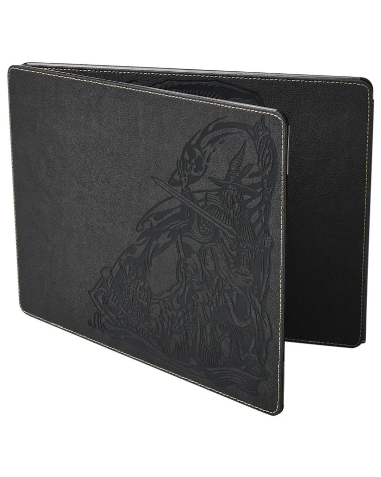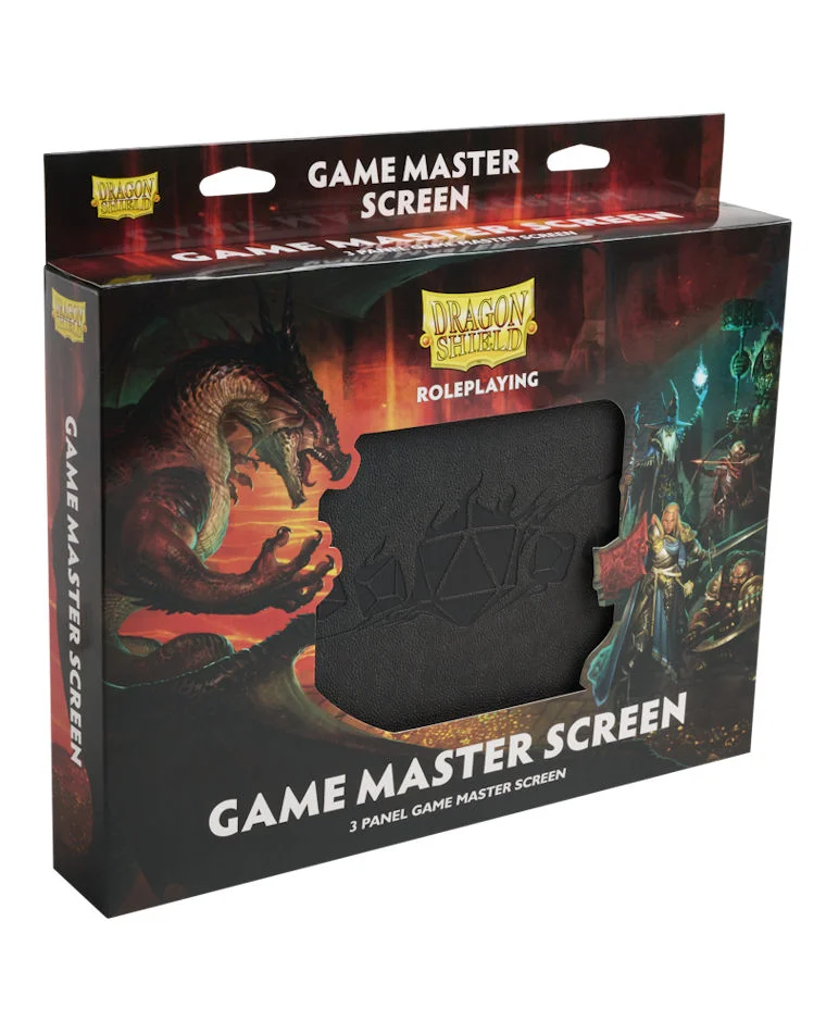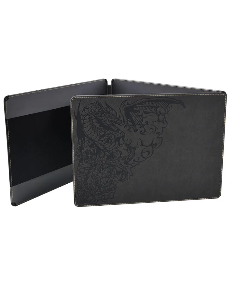 Let epic stories unfold as brave adventurers dive into your world of grand quests and exploration. Never lose track of turn order and oversee your secret notes as the plot thickens behind this elegant customizable Game Master Screen. The integrated initiative tracker lets you streamline combat sessions with clearly visible initiative order for the whole table. Use the included cards and dry erase marker to create PC, NPC and monster cards. The Game Master Screen sits at a pleasant ergonomic height giving you a comfortable view of the adventures that unfold even while seated, ample space for sheltering reference notes, rules, maps and more behind the screen. Includes: Dragon Shield mini adventure 18 reusable plastic cards and dry erase marker Features: Ergonomic height Integrated initiative tracker Subtle and elegant embossing Panels hold letter and A4 size paper Durable iron grey Dragon Skin exterior The GM screen’s dimensions when open straight are 96 by 23 cm (37.8 x 9"). Measures 13.5 x 23 x 1.7 cm (5.3 x 9 x 0.7") when folded shut.