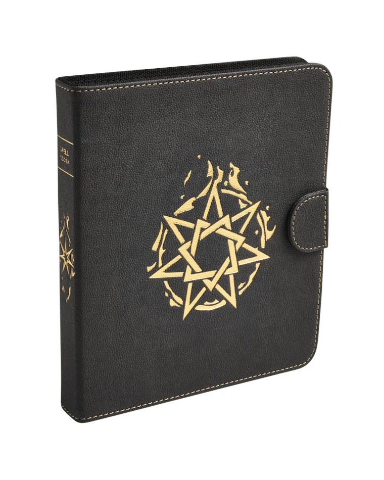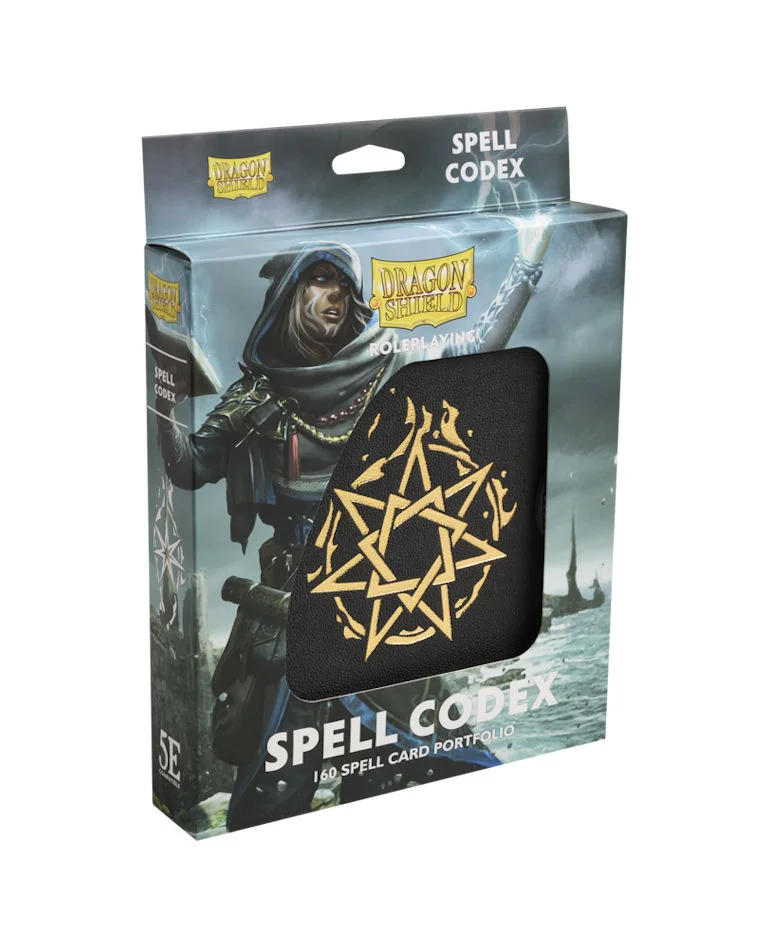 Experience the feel of flipping through a magic spell book, channeling the magical energy to cast mighty spells. Take your game immersion to the next level. Stay in control and never lose track of your remaining spell slots with the included 5e spell slot tracker and dry erase marker. The Spell Codex is compatible with official DnD spell cards and accommodates 160 spells. Featuring an elegant Iron Grey Dragon Skin cover with enchanting ornate embossing on the front and spine. Go on some light questing with the included free 5e compatible mini adventure. Features: Secure magnetic clasp Room for 160 spell cards Compatible with official DnD spell cards Dry erase marker and 5e compatible spell slot tracker included Durable and elegant Dragon Skin exterior with golden druidic embossing Without cards the Spell Codex measures 21.7 x 18.8 x 3cm (8.54 x 7.4 x 1.2")
