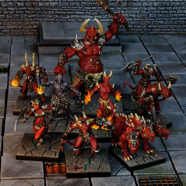 Born of an extra-dimensional realm and the energy of the pure evil which fuels it, creatures of the Abyss are as alien as they are lethal. The very air of the mortal world burns them, every second that they spend away from the embrace of the Abyss a searing agony on their senses which can be soothed only by slaughter. It is this, as much as their very nature, which makes them so terrifying to face in battle, as they tear into all who face them with wild abandon. Contents This set contains 9 pre-assembled premium plastic models, including: 2 Lower Abyssals 1 Lower Abyssal Flamebearer 1 Abyssal Guard 1 Succubus 1 Hellhound 1 Tortured Soul 1 Efreet 1 Moloch Plastic Dungeon Themed Bases