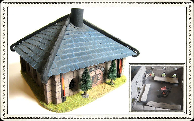 Vad passar bättre för dvärgarna än en stadig festsal där de kan fira årets högtider såsom höstens nya ölbrygder, lyckade jakter men framförallt segrar mot klanens fiender! Komplett med inredning och avtagbart tak. Dimensioner: ca 24x24x15 cm. Monterad och målad. Notera att eftersom denna terräng är handgjord varierar utseendet något från produkt till produkt. Tillverkad helt av återvunnet material. Innehåller smådelar, olämplig för små barn.