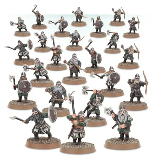 This plastic boxed set contains 32 components, with which to build 24 Dwarf Warriors: 8 with bow, 8 with 2-handed weapon, and 8 with hand weapon and shield. This set comes with 24 25mm round bases. These miniatures are supplied unpainted and require assembly.