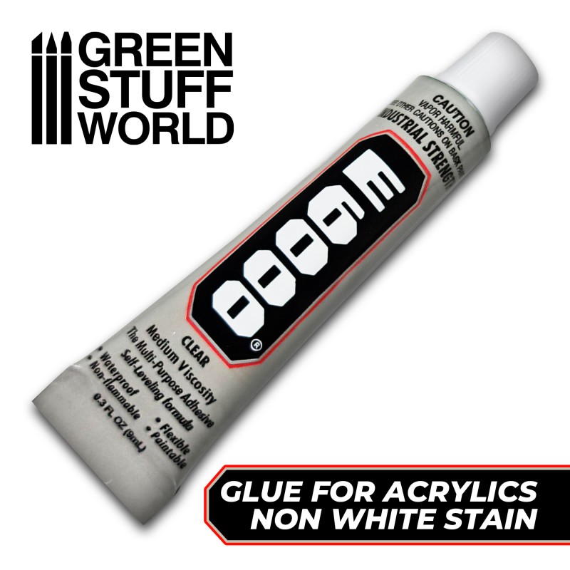 E600 Adhesive for Acrylic Plastics - Perfect for clear acrylic bases! Does not white bleach during drying.