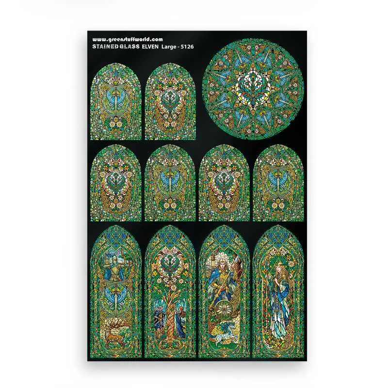 The main feature of Green Stuff World’s miniature stained glass is our innovative double-printing system. This unique method ensures that the designs remain visible and striking, even without backlighting. Whether your model is displayed in a well-lit area or a darker setting, it retains its beauty and clarity. This double printing system also makes our product ideal for use on black backgrounds, where traditional transparent stained glass effects might be lost. This innovation ensures that even in less-than-ideal lighting conditions, its visual impact enhances the overall aesthetic of your project.