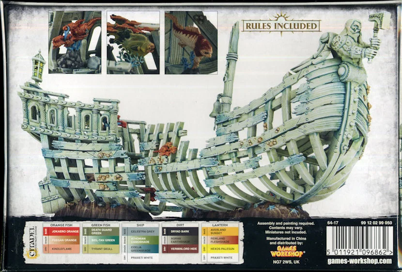 Förpackningen innehåller ett mycket vackert skulpterat skeppsvrak (med starka Sigmaritiska förtecken) och en rad olika havsvarelser att dekorera med.