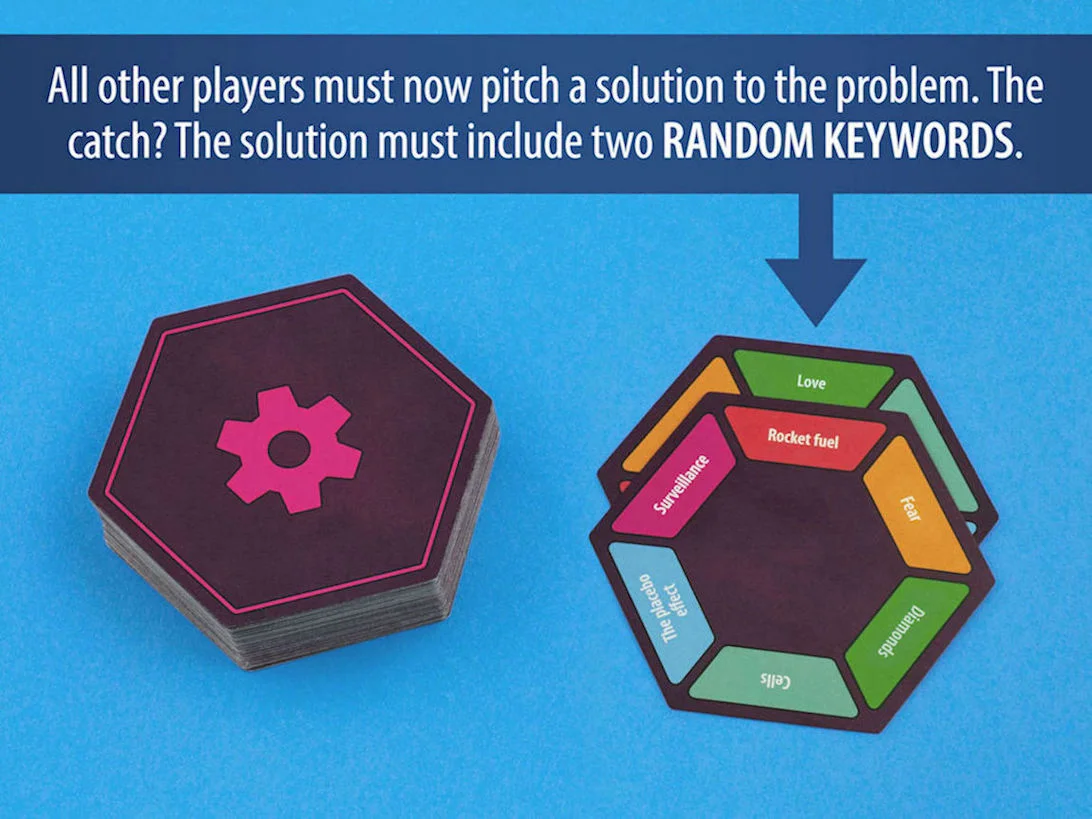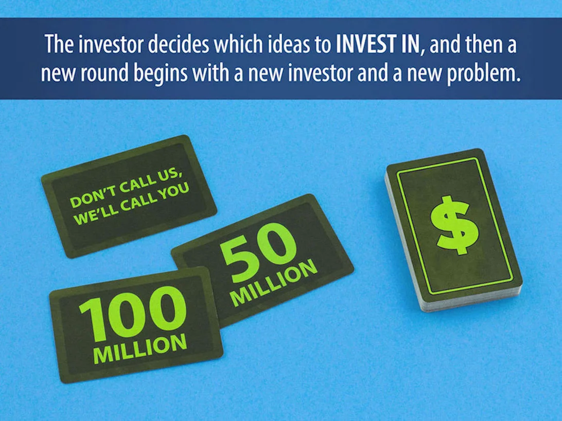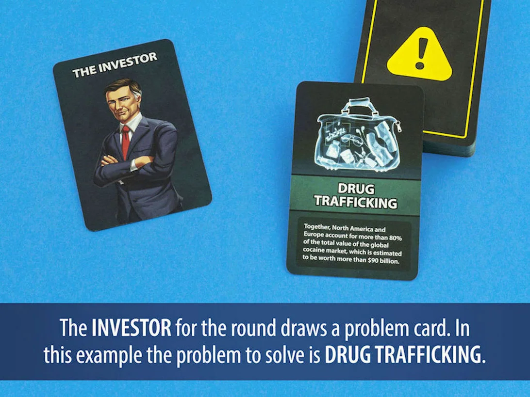 Everyone's an Expert is a fun card game with a serious touch where 3-6 players try to come up with creative (and most likely ridiculous) solutions to different global problems. However, there is a catch. They must base their solutions on two completely random keywords found on their solution cards. Each round one player acts as an investor, investing money in the ideas they like the best. The player with the highest total investment when the game ends wins.