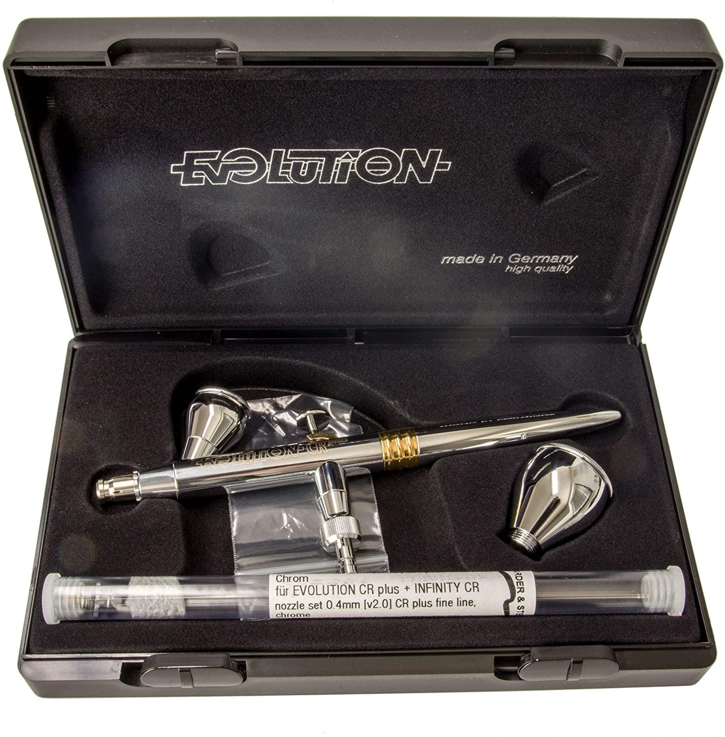 The Evolution CRplus combines elegance with maximum robustness; it has a high-quality triple coating with a chrome finish. As well as its stylish appeal, the chrome plating minimises allergy risks for anyone who has ever had problems with nickel equipment. The Evolution CRplus is moreover fully solvent-resistant, and equipped with PTFE seals to the nozzle, needle, cup joint and valve.
