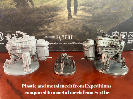 Expeditions: Ironclad Edition features 5 massive metal mechs (instead of plastic miniatures) and silicon base snaps, as well as an individually numbered box with foil lettering.