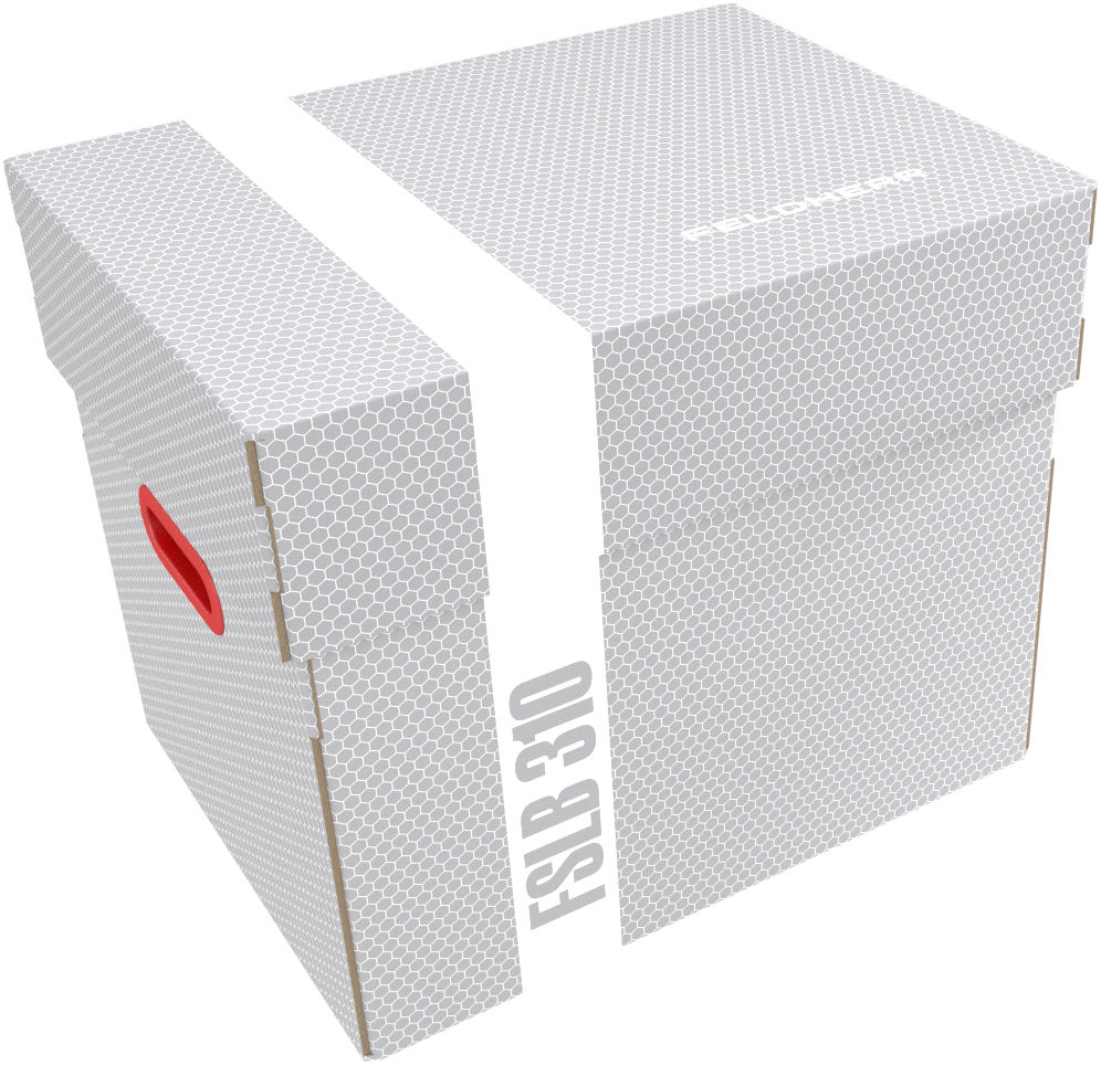 Lightweight, stable and spacious - the large cardboard box with plenty of space for our Half-Size and Full-Size foam trays. This Storage Box is delivered without contents. It offers space for all Feldherr Half-Size and Full-Size foam trays up to a maximum height of 310 mm. The storage box FSLB310 is made of coated, double-walled cardboard. This makes it not only pleasantly light, but also very tear-resistant and stable. The attachable lid reliably protects the contents from dust and other external influences. With the appropriate foam trays, miniatures, game material and all other goods can be stored safely - and conveniently transported with the two plastic-reinforced carrying handles on the sides. The boxes are delivered folded and ready to use. For a more comfortable carriage over longer distances we recommend the Feldherr Transporter. Two FSLB310 boxes fit in the bag. Due to the standard dimensions, further combinations with the other Storage Boxes are also possible. Inner dimensions: 350 mm x 285 mm x 310 mm Outer dimensions: 380 mm x 310 mm x 320 mm