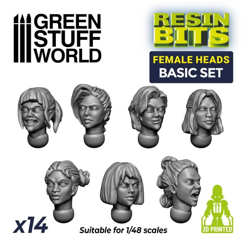Heads Set of resin parts made of high-quality resin, designed to fit 1/48 tabletop wargaming scale miniatures, including GW miniatures. These bits will add a creative twist to an existing Sci-fi miniature collection, or even create completely new, bespoke units and miniatures. Supplied unassembled and unpainted. Material: high-quality resin Content: 14 heads