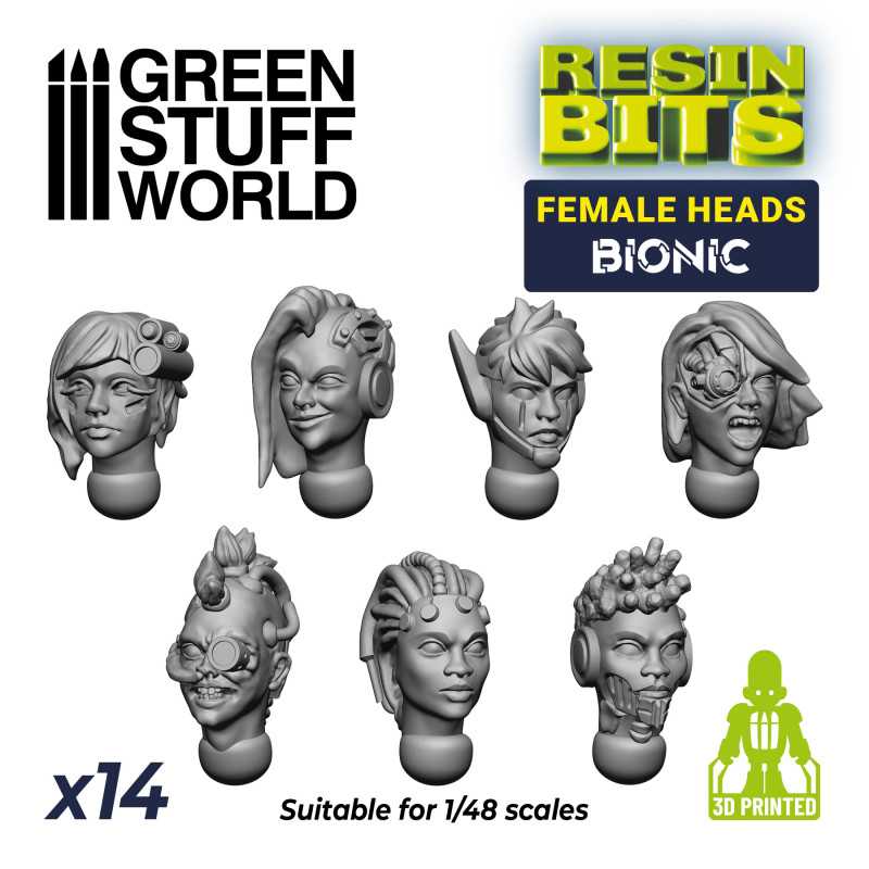Heads Set of resin parts made of high-quality resin, designed to fit 1/48 tabletop wargaming scale miniatures, including GW miniatures. These bits will add a creative twist to an existing Sci-fi miniature collection, or even create completely new, bespoke units and miniatures. Supplied unassembled and unpainted. Material: high-quality resin Content: 14 heads