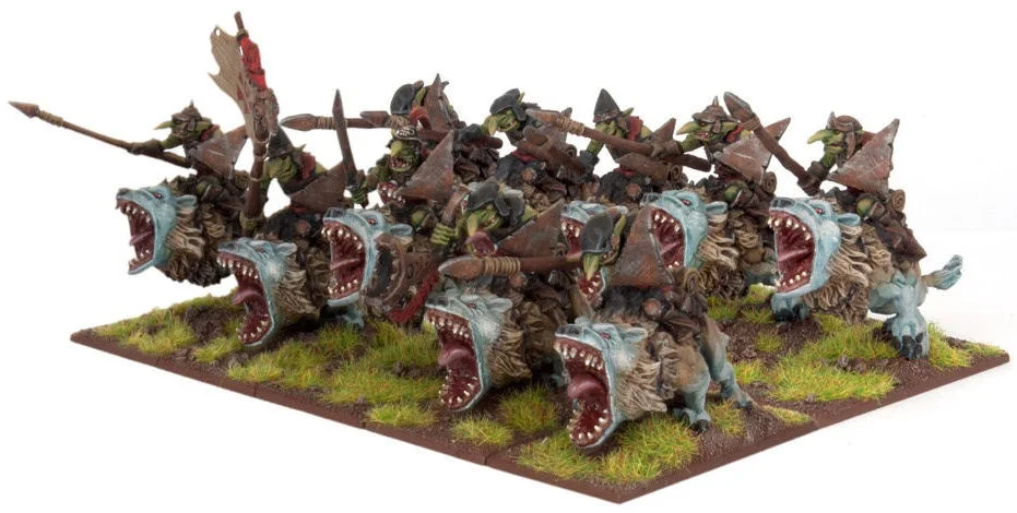 Goblins ride all manner of beasts into battle, from giant rodents to ferocious wolves, and even giant insects! The most popular mount for a Goblin who wants to strike fear into his opponents is the Mawbeast, but it takes a particularly unhinged attitude to want to tame and ride one! Thankfully, a Goblins desire to be a bit scary for once often outweighs his natural cowardliness. Number of Miniatures: 10 Product Type: Plastic Resin Miniatures with metal components Unit Type: Cavalry This Set Includes: 10 Goblin Fleabag Rider Metal Command Components Plastic Bases Mantic Points Models supplied unassembled and unpainted