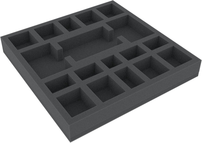 In order to prevent your game box from looking like it has been attacked by Valyndra, we at Feldherr have developed the foam tray set for the original Descent: Journeys in the Dark Second Edition Lair of the Wyrm board game box. The set consists of a foam tray (dimensions: 247 mm x 247 mm x 35 mm height) and a foam topper. Naturally, the material used are free of chlorine and acid.